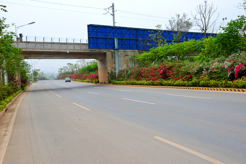 该道路设计标准为城市主干道,道路全长约4.8公里。设计道路宽度为60米,双向8车道,横断面采用四块板形式,路面采用沥青混凝土路面,设计速度为60千米/小时。主要包括道路、桥涵、排水、照明、绿化、交通工程等建设项目。项目总投资6.5亿元,其中建安费3.2亿元。