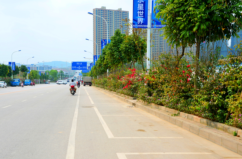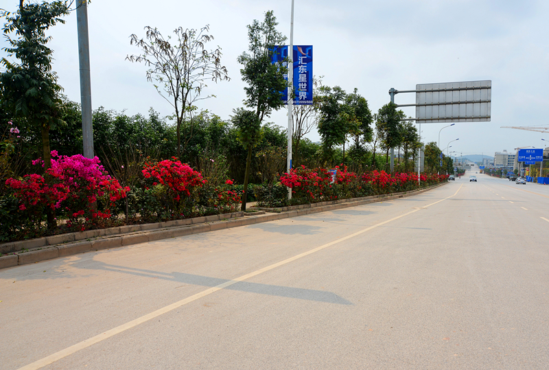 本项目位于金阳路,于2014年12月开工,2015年1月完工,绿化面积约2700㎡,种植主要品种有:人面子、黄金香柳、夹竹桃、、硬枝黄蝉、红继木、三角梅等