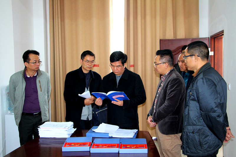 经开区党工委书记、管委会主任何尚汉认真检查河浪村精准扶贫、精准脱贫一户一档脱贫资料