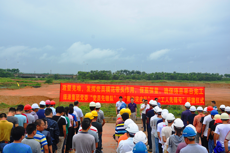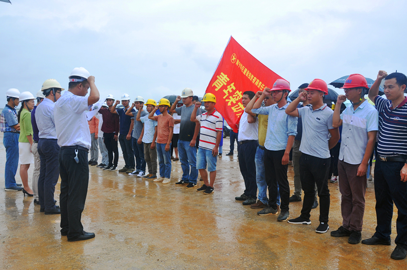 当天,细雨蒙蒙,欧亿-中国一站式体育服务平台党委书记、董事长、总经理龚国强在项目现场给参建党员授予了“党员先锋队”旗帜,给参建团员青年授予了“青年突击队”旗帜,欧亿-中国一站式体育服务平台副总经理、工会主席黄丽琴给吴圩空港经济区重点项目推进组授予了“工人先锋号”锦旗,激励广大党员干部青年同志们要以强烈的政治责任感、立足本职岗位,充分发扬不怕吃苦、勇于负重,敢打硬仗、能打硬仗的“绿港铁军”优良传统,为吴圩空港经济区项目建设做贡献。