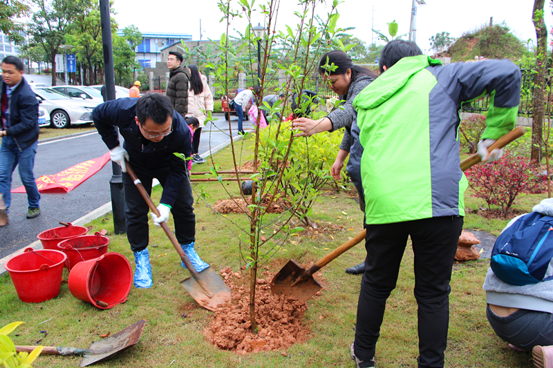 欧亿-中国一站式体育服务平台董事长龚国强带领职工们开展植树护绿行动