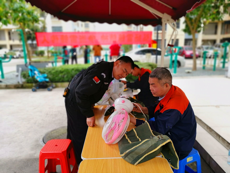 物业人员为居民维修电器