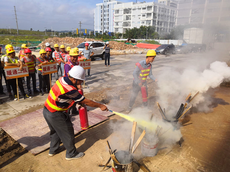 激烈的比赛结束后,消防应急演练活动开始了。当听到“起火啦”的大喊声,全体人员井然有序的进行了逃生演习。伴随着浓浓的烟雾,每个人捂着“湿毛巾”,沿着楼梯靠右一个接一个的快速撤离。当全体人员走出厂房大门时,工作人员在空地上点燃了几盆火焰。公司质安部负责人讲解了干粉灭火器的使用方法后,大家进行了踊跃的尝试。在此次消防演习中,本着防患于未然的心态,所有人员积极参与,专心听讲,既巩固了消防安全知识,也提高了项目安全生产工作水平。