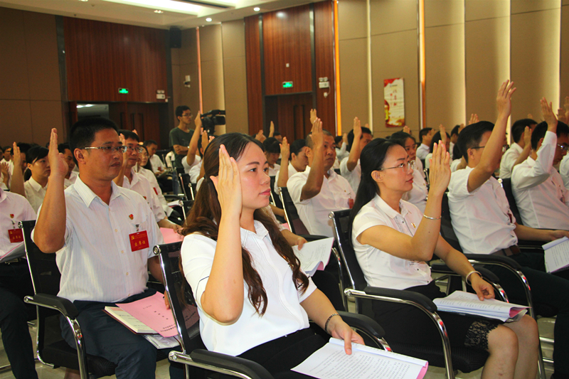 在党员大会正式会议,整个大会会场严肃而热烈。
