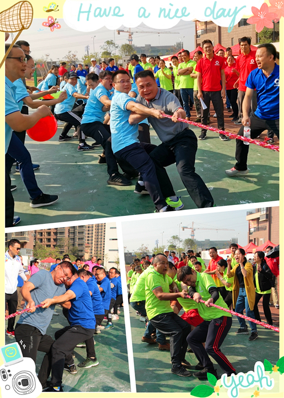 首先开始的是拔河比赛,只听裁判员的一声哨响,现场马上进入到紧张的比赛环节。廖勇副主任与集团公司领导一道,一马当先打头阵,对垒科巨公司队。只见这边运动员们个个咬紧牙关、目光如炬,脸憋得通红、手拉得充血,比赛的战况紧紧地牵动着观众们的心,绳子一时往左一点,一时往右一点,在紧张的氛围中大家声嘶力竭地给运动员们加油鼓励,现场气氛十分高涨!经过几轮的比拼,万方公司队获得拔河比赛项目冠军、科巨公司队获得亚军、荣鑫公司队获得季军。