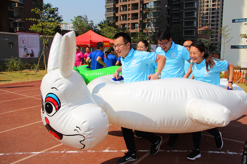 趣味类的活动更讲究技巧和团队合作,比如快乐运球,五个人用身体顶着健身球往前跑,带头的人既不能跑太快,后方的人也不能拼命挤或拉开距离,这样球才不容易被挤落。为了赢得比赛,参赛队员们可没少费脑力,最终他们凭借集体的智慧和团队的合作,在运动场上都发挥了出色的表现。报名人数最多的滚铁圈项目,则以独特而怀旧的道具吸引了65人报名参加。随着铁圈飞转,它仿佛让大家回到了快乐的童年时光,不少职工撒开腿欢跑起来。即便有些运动员从来就没有玩过滚铁圈,滚得歪歪扭扭,也勇于尝试,坚持完成比赛,赢得了两旁观众们的掌声。