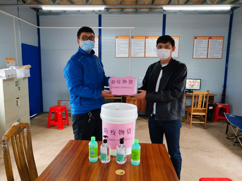 荣鑫公司副总经理黎杰代表公司为项目现场送上防疫物资