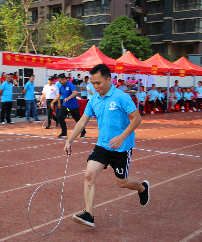 《滚铁环》(科巨公司 卢艳芳)图片说明:2019年欧亿-中国一站式体育服务平台”团结杯“运动会上,职工们参加趣味项目滚铁环