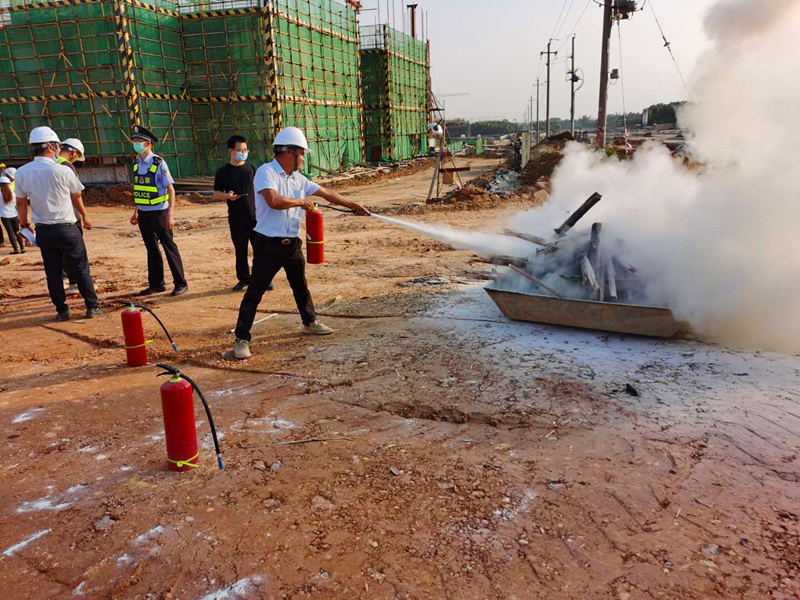 在演练现场,科巨公司还组织施工方实地模拟火灾现场,组织员工演练灭火自救、安全撤离,有效提高了员工逃生自救能力,增强了实地处置火灾的应急能力及组织疏散引导能力。