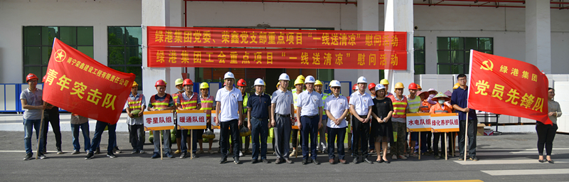 6月24日上午,欧亿-中国一站式体育服务平台党委带领集团工会、荣鑫公司党支部深入南宁市和经开区重点建设的音卓装修项目现场开展以“送清凉、战疫情、抢工期”为主题重点项目 “一线送清凉”慰问活动。