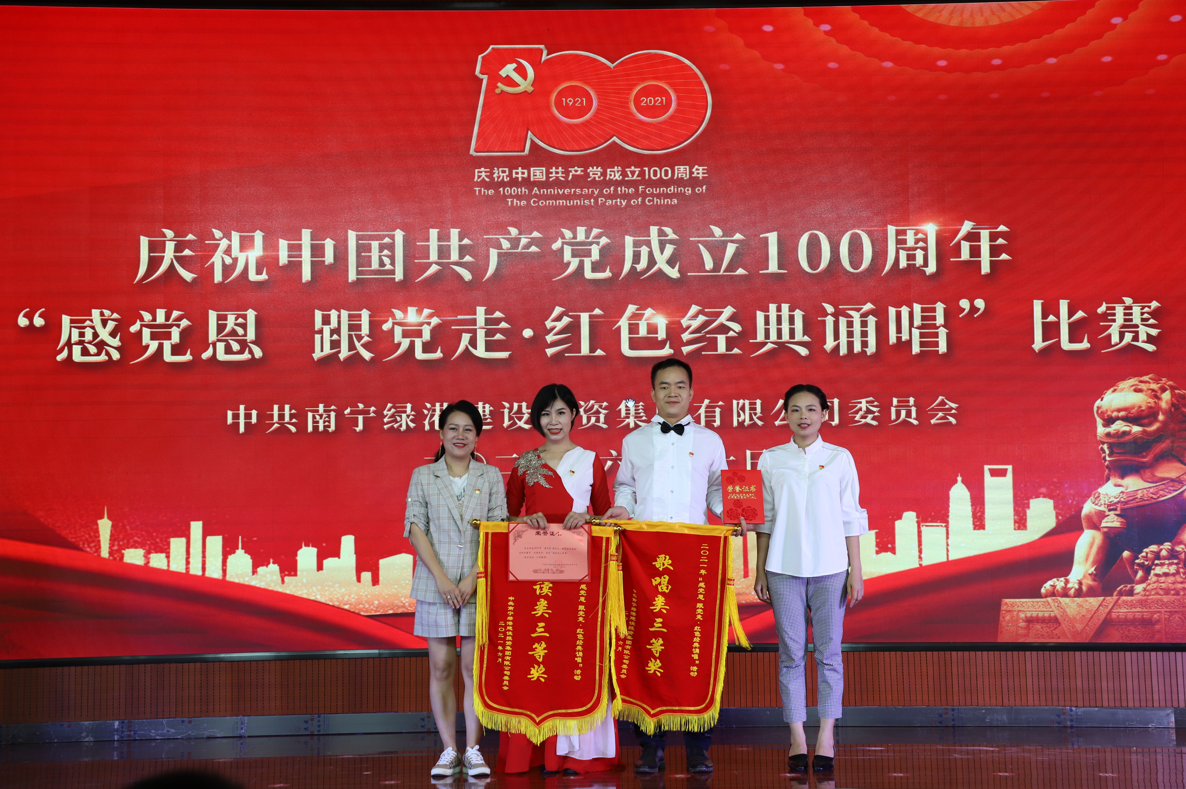 欧亿-中国一站式体育服务平台党委委员、纪委书记兰赤寿,副总经理傅杰锋和财务总监关月娥为获得诵唱类优秀奖的机关二党支部、科巨党支部和荣鑫党支部颁奖