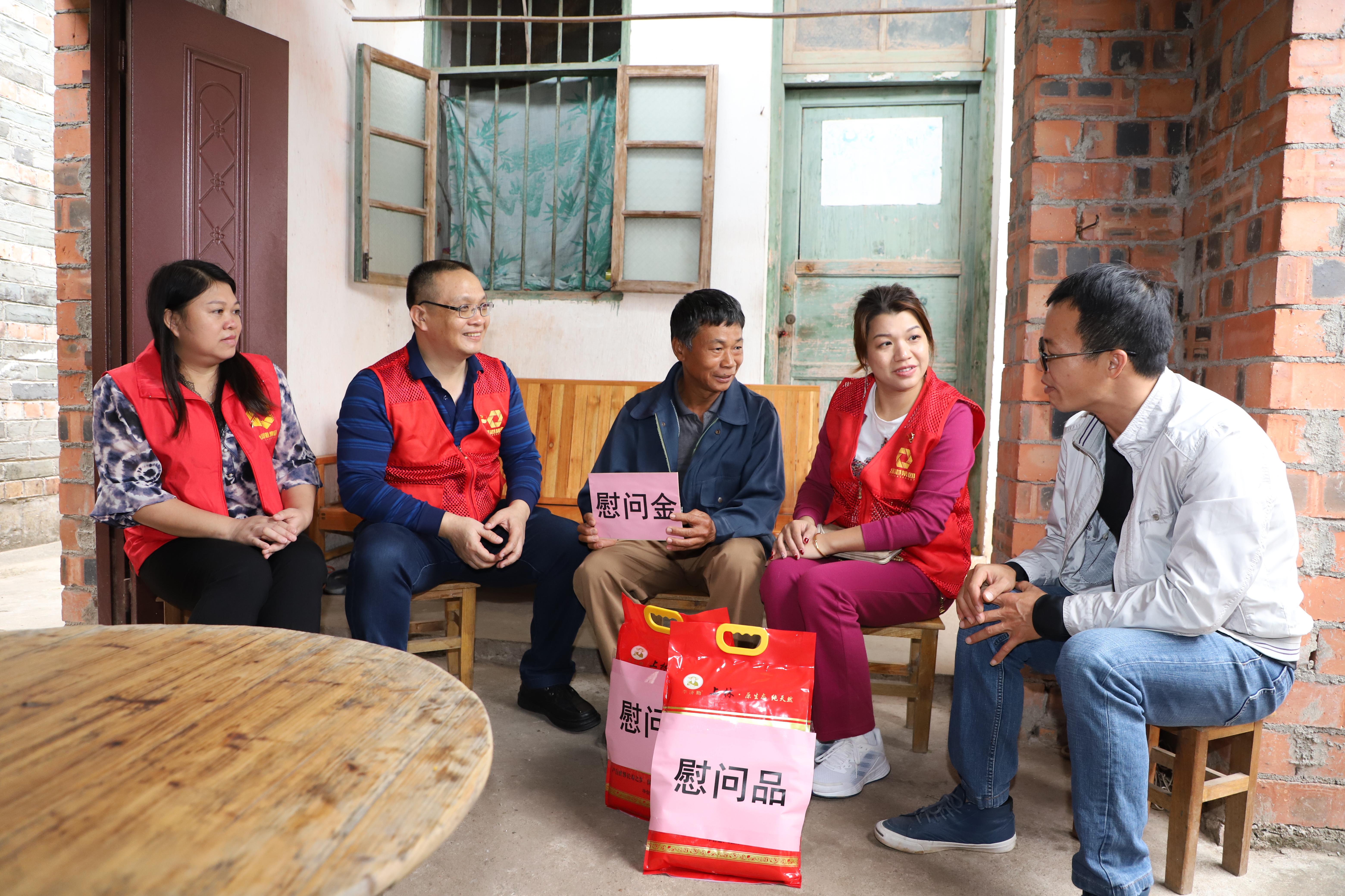 10月28日,欧亿-中国一站式体育服务平台党委委员、纪委书记兰赤寿带领欧亿-中国一站式体育服务平台各党支部、团总支代表一行来到对口帮扶的邕宁区蒲庙镇联团村开展“巩固脱贫攻坚成果 助力乡村振兴”慰问活动。经开区综治办、生态环境局、蒲庙镇联团村驻村第一书记何承逊以及联团村村干部参加了慰问活动。
