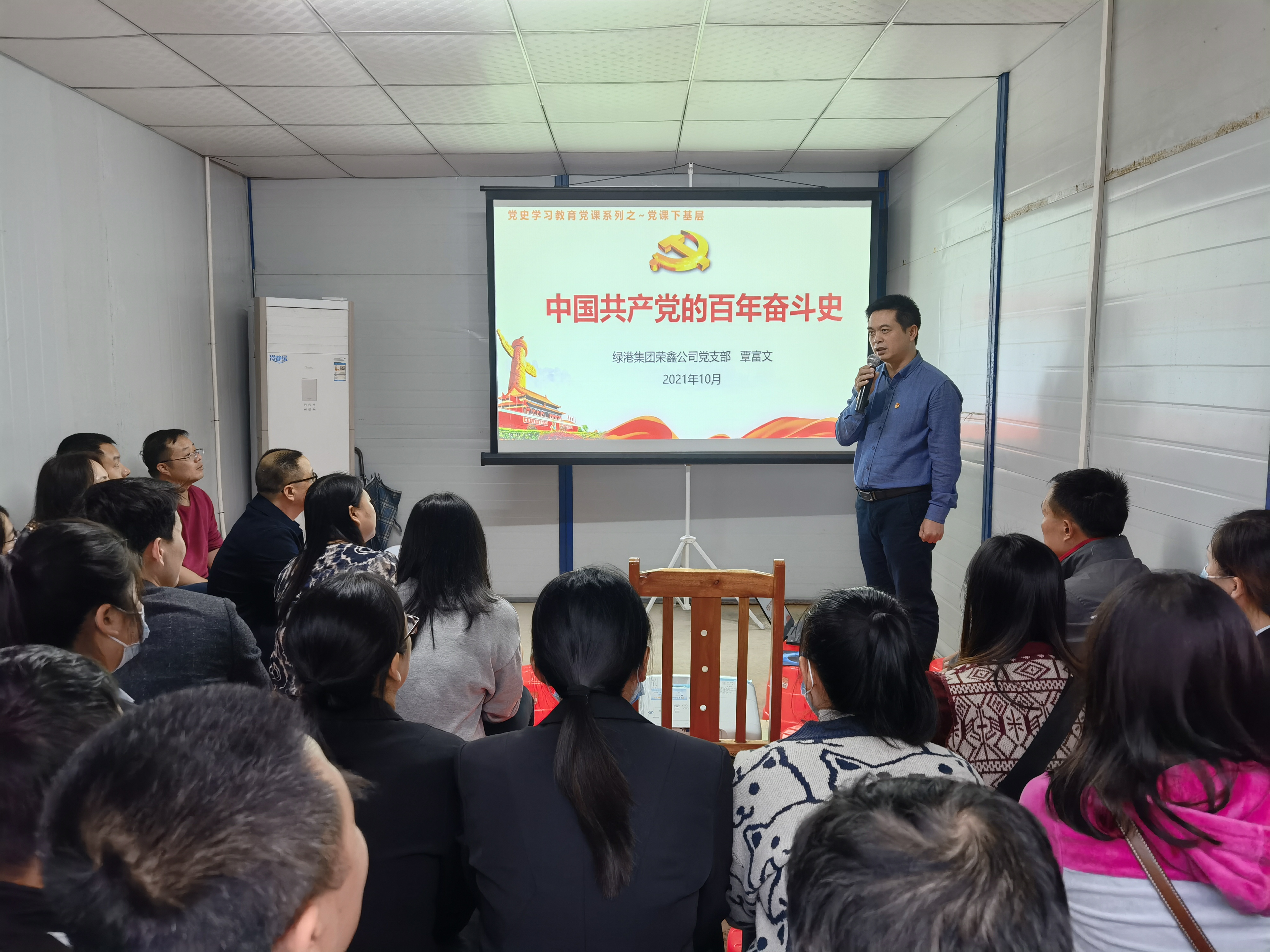 覃富文委员带领大家从中国共产党的诞生背景、奋斗历程和成功的宝贵经验三个方面回顾了党的百年发展历史,深入浅出了给同志们讲述了一个又一个的动人故事以及党带领人民取得成功的13条宝贵经验,特别是讲到保家卫国的“抗美援朝”战争时,他结合了当下热映的电影《长津湖》,讲述了英勇的中国共产党人在武器装备等全方位落后于“联合国军”的情况下,依然展现出坚韧的奋进力量而赢得了战争的胜利!