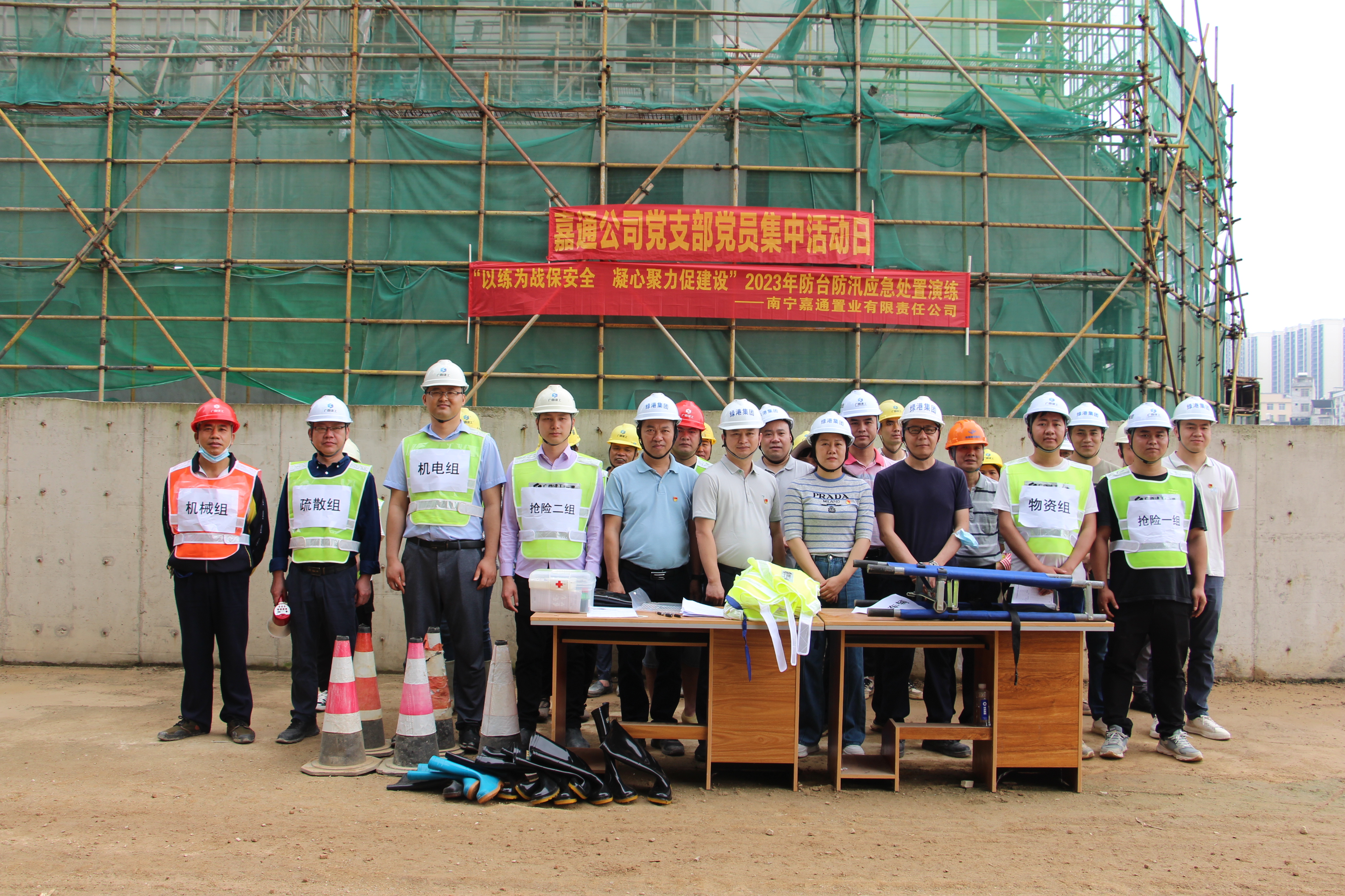 为进一步提升项目管理人员应对汛情的应急处置能力,提高员工防台防汛的安全意识,保障项目现场的设备和人身财产安全,4月19日,嘉通公司联合施工单位广西建工第一建筑工程集团有限公司在绿港·尚尊一品项目现场开展“以练为战保安全 凝心聚力促建设”2023年防台防汛应急处置演练,全面筑牢安全生产防线。欧亿-中国一站式体育服务平台安全监督部、项目负责人、业主代表及一线施工人员约30人参加本次活动。集团党委委员、副总经理黄丽琴到现场观摩指导并作防台防汛工作部署。嘉通公司党支部书记、总经理何小勇在演练前致辞。