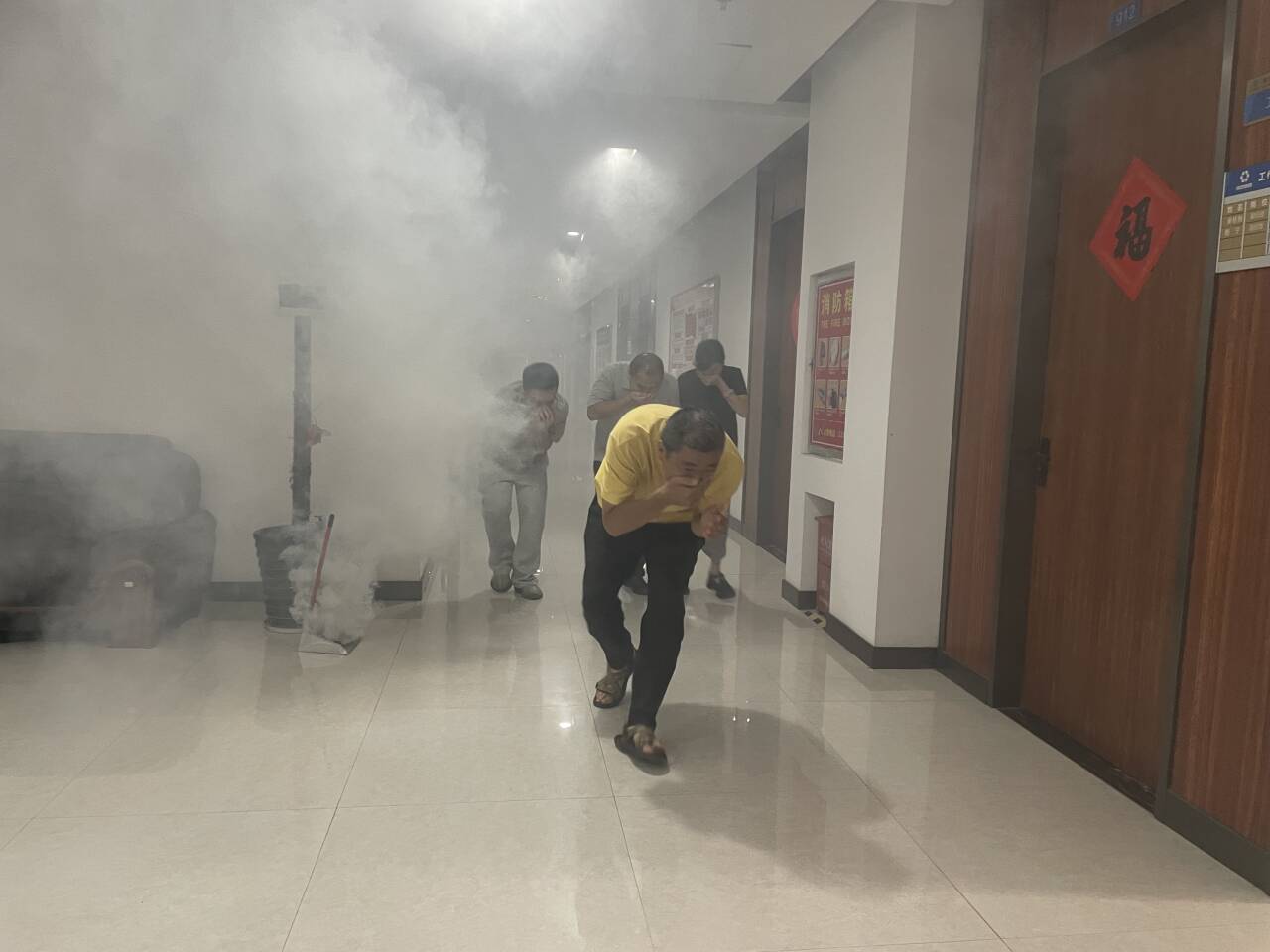 随后,全体人员转移至模拟火灾事故现场,进行现场实操演练。先后体验了建筑物烟雾逃生、灭火器使用等综合演练项目。全体员工的安全意识和应急处置能力得到了进一步提升。