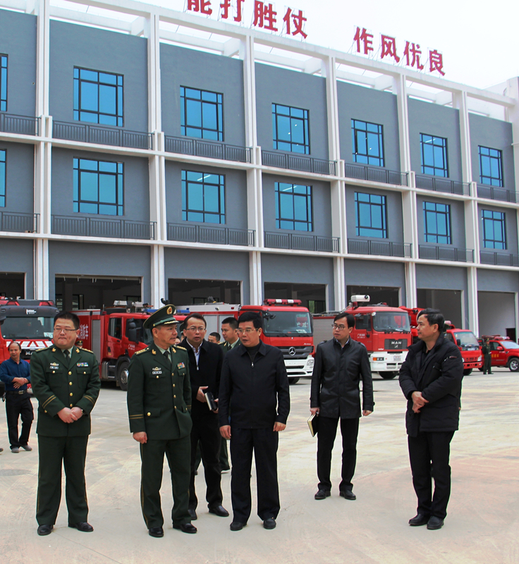 2月23日上午,南宁市消防支队支队长邓锡中在经开区党工委书记、管委会主任何尚汉、经开区消防大队大队长詹宁、欧亿-中国一站式体育服务平台董事长杨东等领导的陪同下到欧亿-中国一站式体育服务平台承建的吴圩空港新城消防站开展调研。